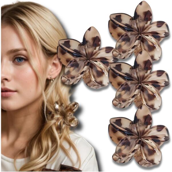 4 db-os hajcsat szett, nagy, leopárdmintás, Plumeria virágos csatok (Zestaw 4 szt spinki do włosów hawajski styl)ALLEGRO