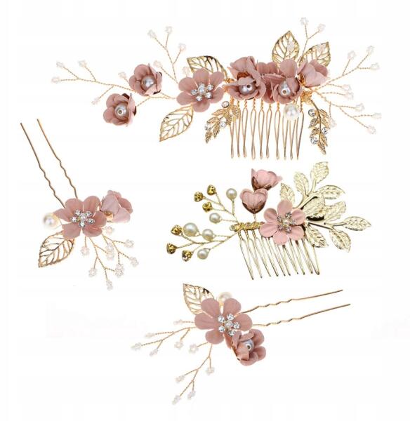 Arany Csörgő Hajdísz Virágokkal Esküvőre 4DB (Zymice)