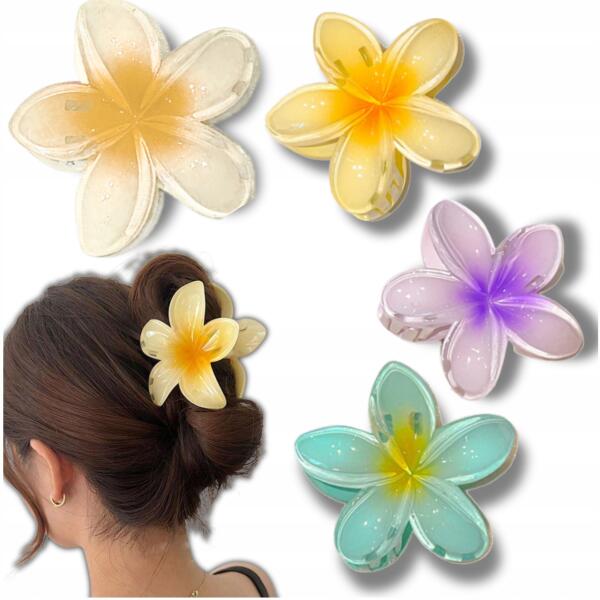 EdiBazzar 4 db-os szett plumeria virágos hajcsat, 8 cm-es, hawaii-i, nyári stílus (Zestaw 4 spinki do włosów 8 cm hawajski styl)ALLEGRO