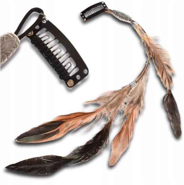 EdiBazzar Hajcsat Bézs Tollakkal Fesztiválokra Boho Hosszú Könnyű Tökéletes (Spinka Do Włosów Z Beżowymi Piórkami)ALLEGRO