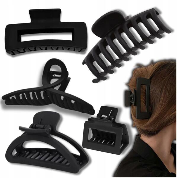 EdiBazzar Hajcsat szett 5 db-os matt hajcsat fekete klasszikus könnyű (Zestaw 5 szt czarne matowe klamry do włosów)