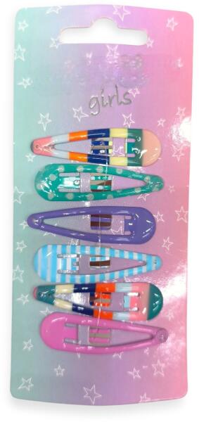 Leírás: Ez a 6 darabos fém hajcsat szett tökéletes választás kislányok számára, akik szeretik a színes és játékos kiegészítőket. A pöttyös és csíkos minták vidámságot visznek minden frizurába, miközben a fém kapcsok stabilan tartják a hajat. Ideális hétköznapokra, iskolába vagy akár ünnepi alkalmakhoz is.