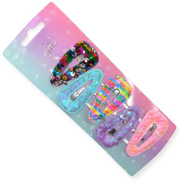 Gyermek hajcsat szett - színes flitteres fém hajcsatok, 5 db (1225881)