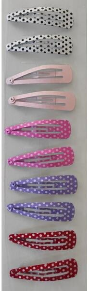 - A készletben lévő valamennyi csit-csat virágos pöttyös mintájú