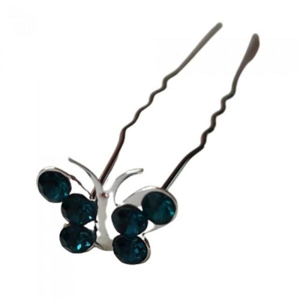 Hair Power pillangó hajtű kék strasszkövekkel, 1 db- Elegáns pillangó formájú hajtű mélykék strasszkövekkel kirakva