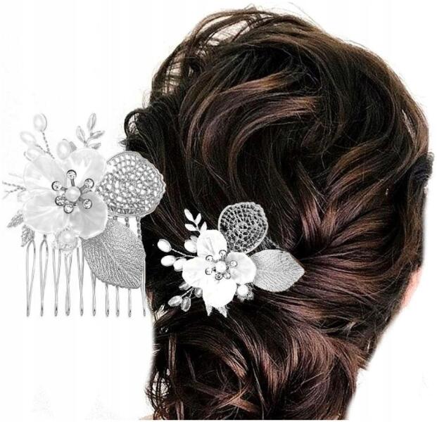 Kis Ezüst Fésű Esküvői Hajdísz Virág (N14)