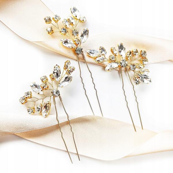 Kokonet Szett hajtű, hullámcsat, kontytű esküvői frizurához, Csillogó arany, látványos (4-0219)