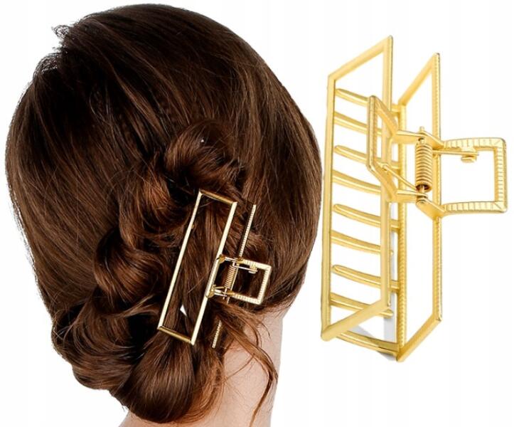 Nagy, arany színű, téglalap alakú fém hajcsat hajkapocs divatos (5905884038994)ALLEGRO