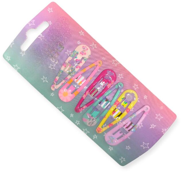 Pasztell színű fém hajcsat készlet gyerekeknek - virágos és állatmintás - 6 db (1239612)