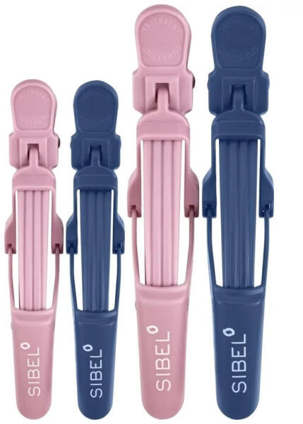 Sibel krokodil feltűző csipesz, pink-kék, 2x9 cm, 2x11 cm, 4 db - hajpatika
