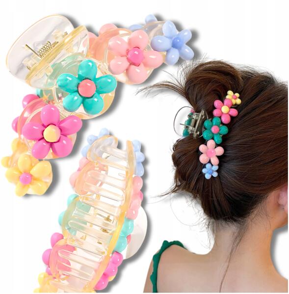 Színes, boho stílusú hajcsat pasztell virágokkal, nagy méretű, könnyű csipesz (Kolorowa klamra do włosów boho pastelowa)ALLEGRO